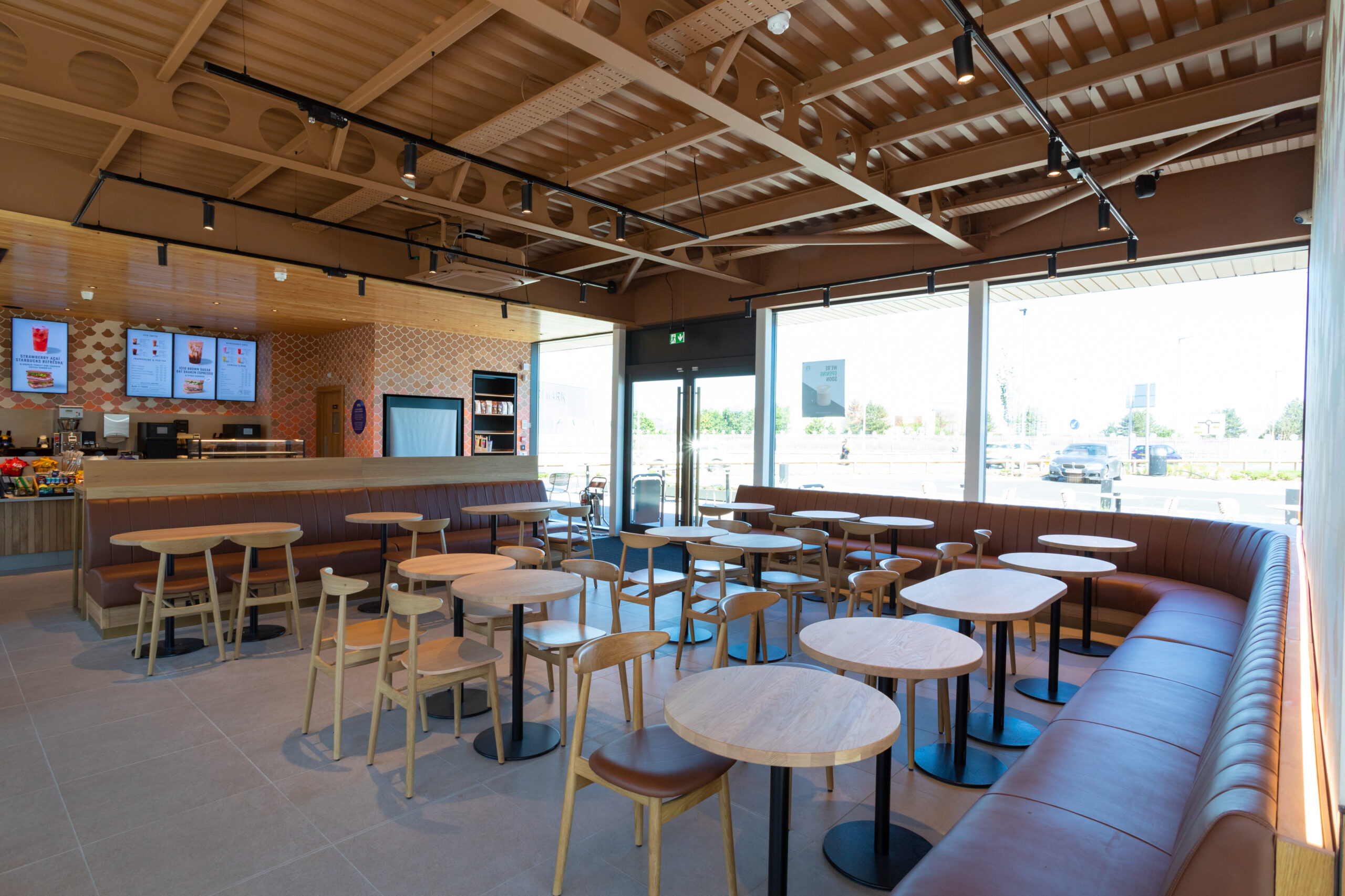 The store has a contemporary design, offering customers the opportunity to enjoy a handcrafted cup of coffee and relax with the comfortable inside or outside seating and free wi-fi.