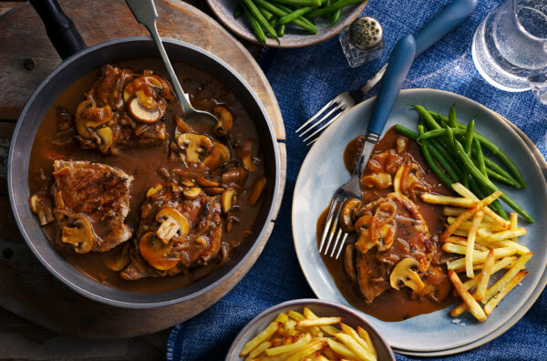 Steak with cheesy Marmite and mushroom sauce