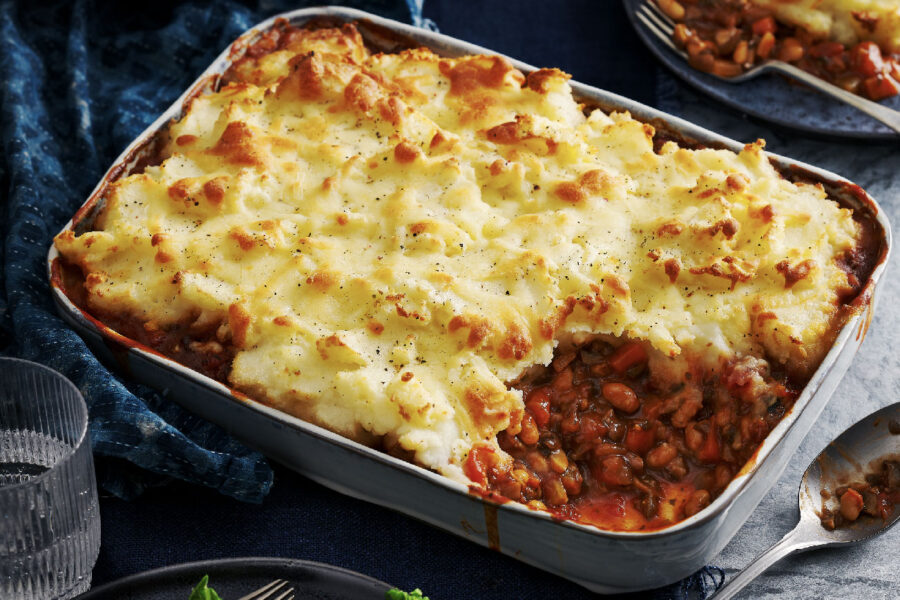 Budget-friendly Co-op Baked Beans are the secret ingredient in this hearty veggie shepherd’s pie that makes it so tasty and comforting.