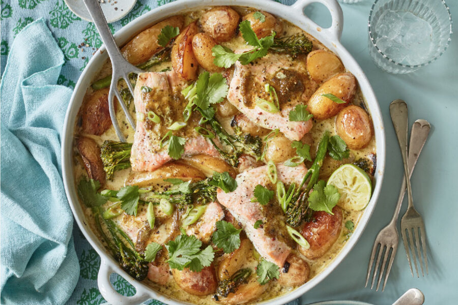 This Thai salmon traybake makes the perfect light bite, ideal for those longer springtime evenings. You’ll be tucking into this tasty dish in no time at all.